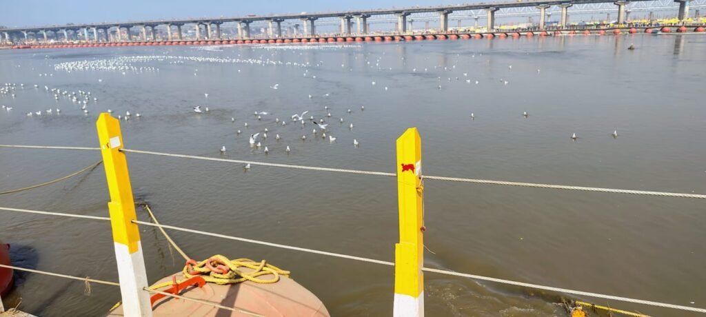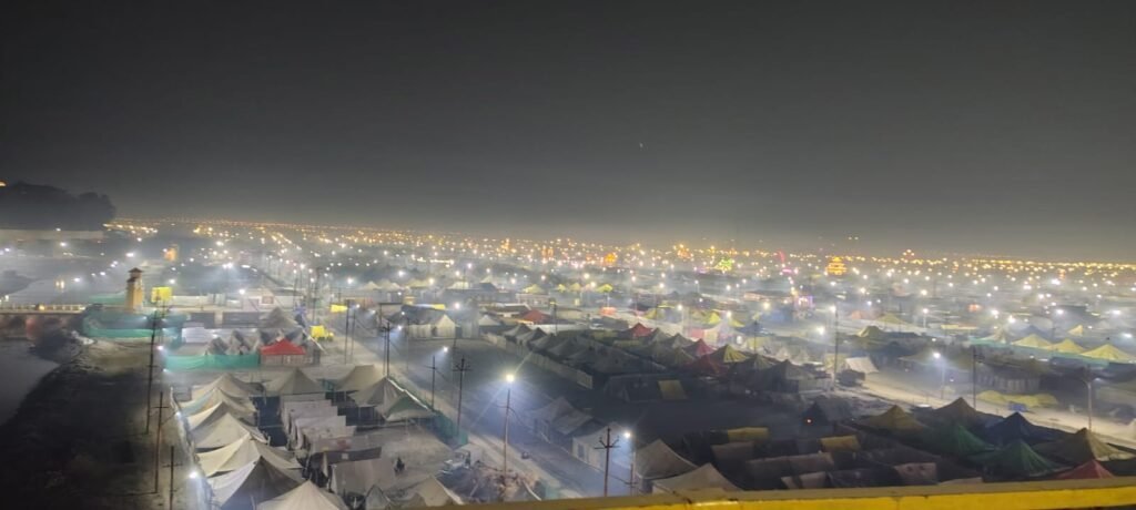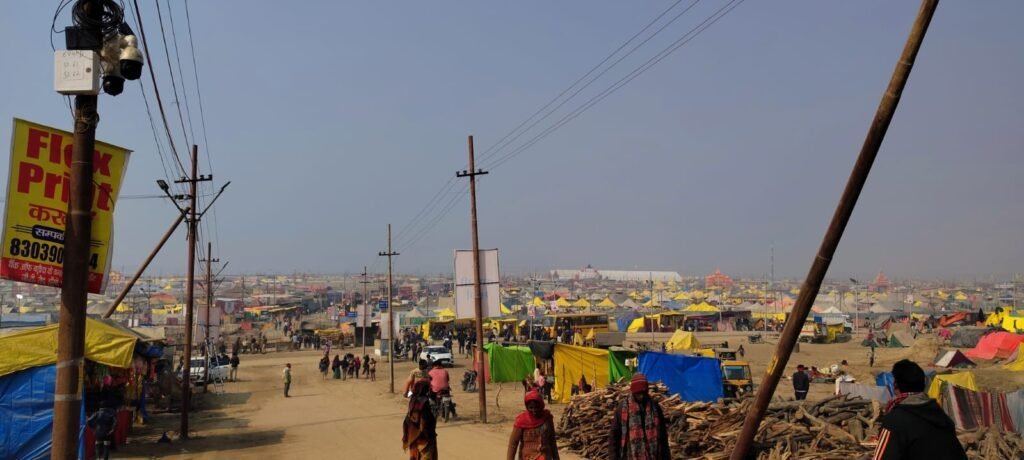 ਸੰਗਮ ਝੂੰਸੀ ਤੋਂ ਥੋੜੀ ਹੀ ਦੂਰੀ ਤੇ ਸਥਿਤ ਹੈ । ਝੂੰਸੀ ਤੇ ਉੱਚੇ ਟਿੱਲੇ ਤੋਂ ਸੰਗਮ ਵੱਲ ਵੱਧਦੇ ਹੋਏ ਜੋ ਦ੍ਰਿਸ਼ ਦੇਖਣ ਨੂੰ ਮਿਲਦਾ ਹੈ ,ਸ਼ਾਇਦ ਹੀ ਉਸਨੂੰ ਸ਼ਬਦਾਂ ਵਿਚ ਬਿਆਨ ਕੀਤਾ ਜਾ ਸਕੇ ।ਅਸੀਂ ਸਾਡੇ ਸਾਹਮਣੇ ਇਕ ਵਿਸ਼ਾਲ ਤੱਟ ਉੱਤੇ ਲੱਗੇ ਹੋਏ ਅਨੇਕਾਂ ਹੀ ਸ਼ਿਵਰ ਦੇਖਦੇ ਹਾਂ । ਜੋ ਇਕ ਵਾਰ ਤਾਂ ਕਿਸੇ ਵਿਸ਼ਰਾਮ ਕਰ ਰਹੀ ਸੈਨਾ ਵਾਂਗ ਲਗਦੇ ਹਨ। ਇਹਨਾਂ ਵਿੱਚ ਸਾਧੂ ਅਤੇ ਸ਼ਰਧਾਲੂਆਂ ਨੇ ਡੇਰੇ ਲਾਏ ਹੁੰਦੇ ਹਨ । ਲੋਕਾਂ ਦੀ ਭੀੜ ਹੁੰਦੀ ਹੈ, ਕਿਤੇ ਕੋਈ ਜਾ ਰਿਹਾ ਹੁੰਦਾ ਹੈ ਕੋਈ ਆ ਰਿਹਾ ਹੁੰਦਾ ਹੈ। ਇਹ ਲੋਕਾਂ ਦੇ ਆਉਣ ਜਾਣ ਦਾ ਸਿਲਸਲਾ ਵੀ ਇਕ ਖਾਸ ਅਹਿਸਾਸ ਦਿੰਦਾ ਹੈ। ਅਨੇਕਾਂ ਪ੍ਰਕਾਰ ਦੀਆਂ ਦੁਕਾਨਾਂ ਦਾ ਬਾਜ਼ਾਰ ਵੀ ਸਾਨੂੰ ਏਥੇ ਦੇਖਣ ਨੂੰ ਮਿਲਦਾ ਹੈ। ਵੱਖ – ਵੱਖ ਘਾਟਾਂ ਨੂੰ ਆਪਸ ਵਿਚ ਜੋੜਨ ਲਈ ਕੁਝ ਆਰਜ਼ੀ ਪੁਲ ਵੀ ਬਣਾਏ ਹੋਏ ਦਿਸਦੇ ਹਨ।